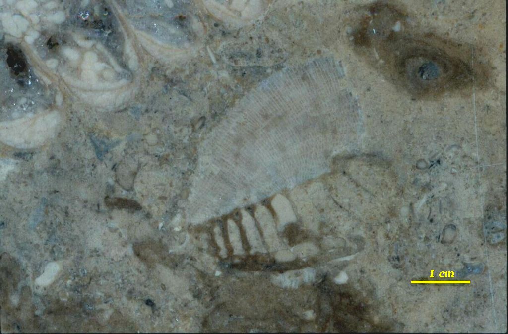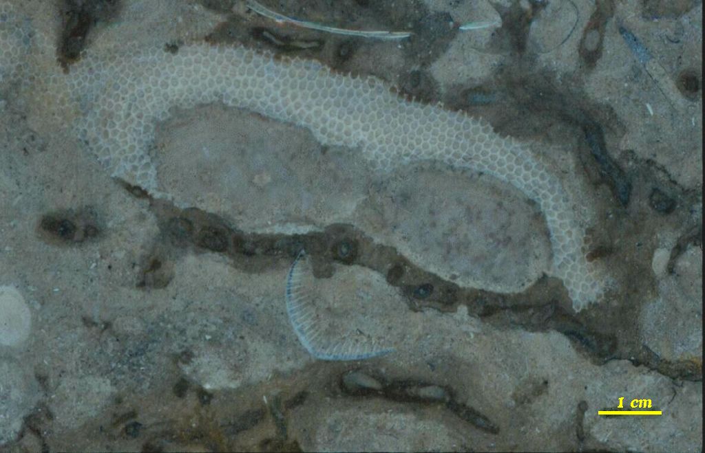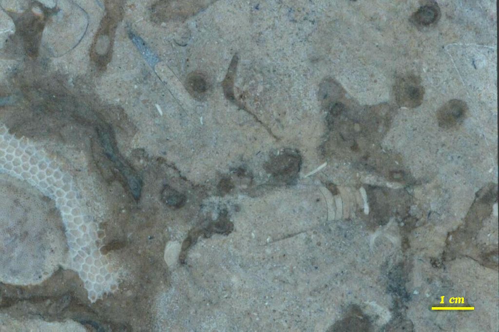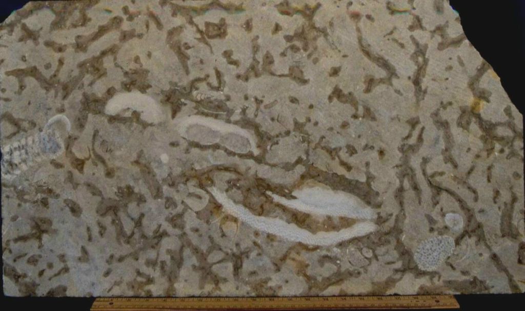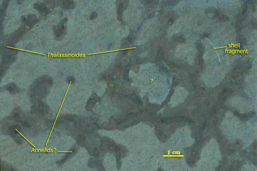Thalassinoides, Annelids?, shell fragmentLab Slab A