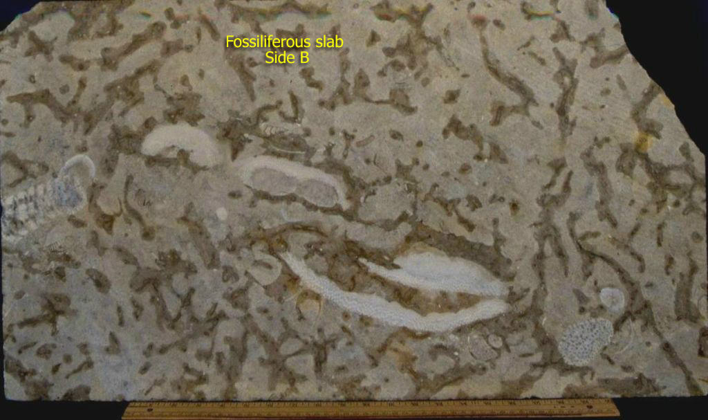 Fossiliferous Slab Side B (Lab Slab B)Exhibited atSubsurface Geological Laboratory, Regina