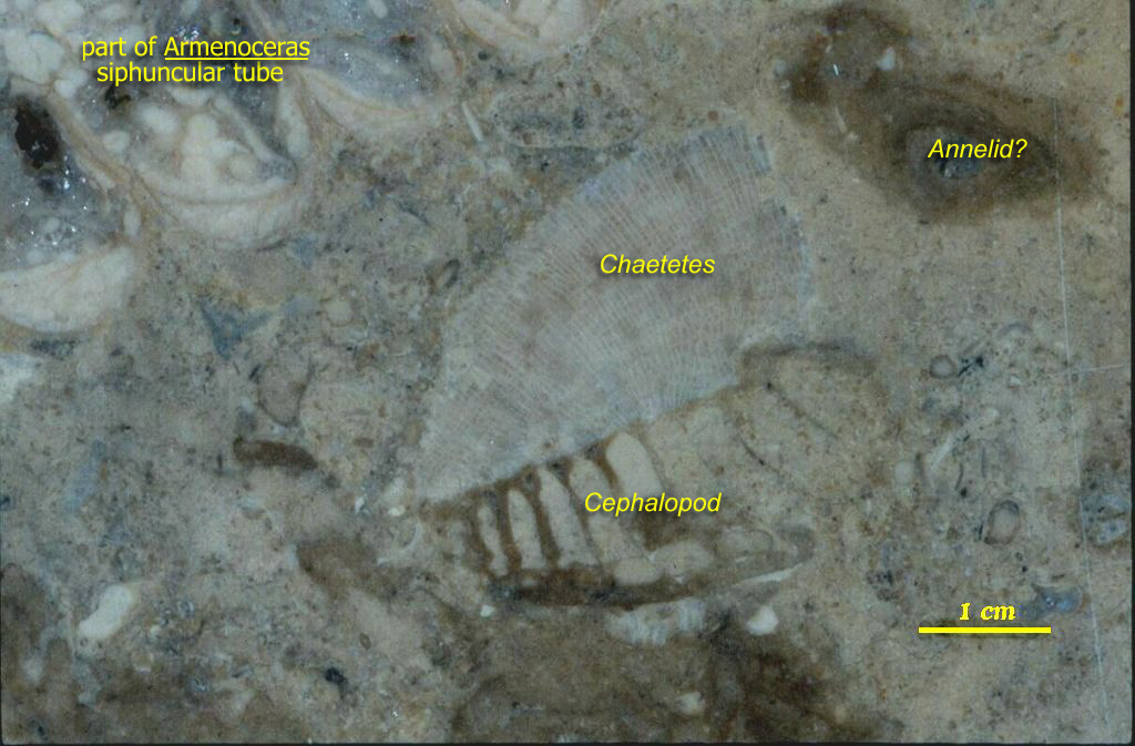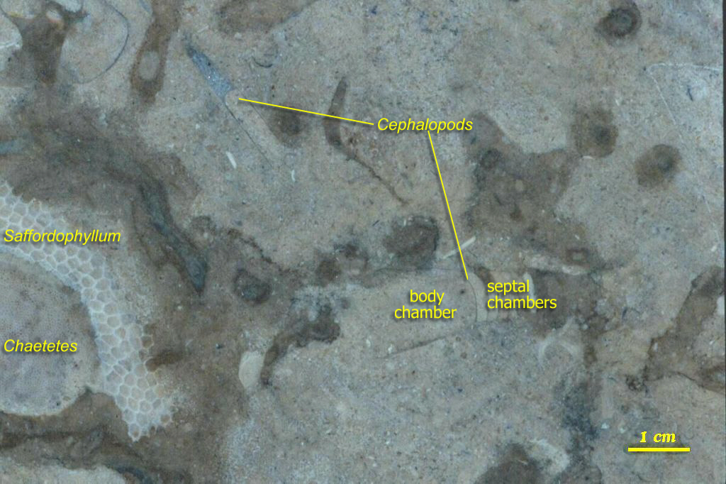 Chaetetes, Saffordophyllum, CephalopodsLab Slab B